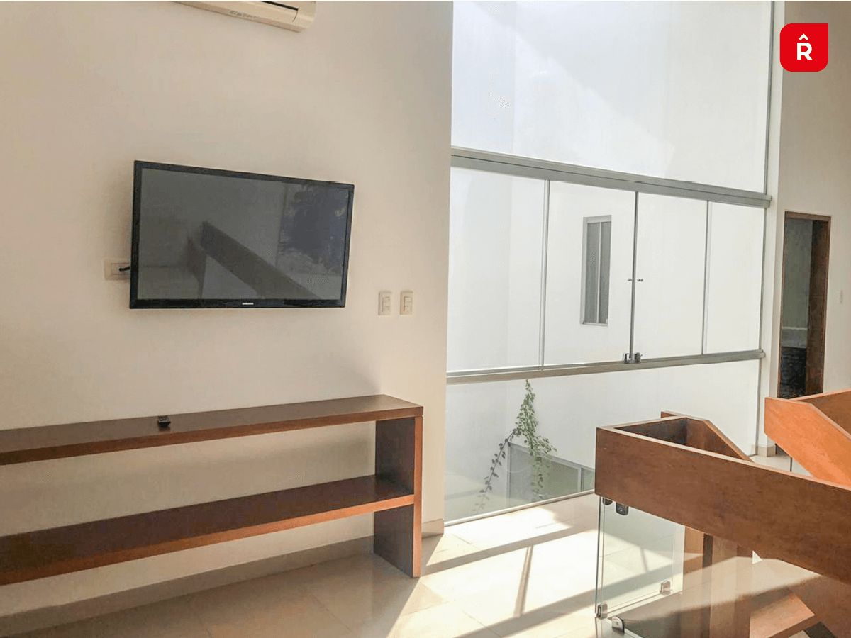 ⁃ La casa se encuentra equipada con aires acondicionados, termo tanque, cocina con muebles altos y bajos, horno, cocina encimera, extractor de grasas, todos los ambientes y ventanas tienen cortinas y lámparas decorativas.